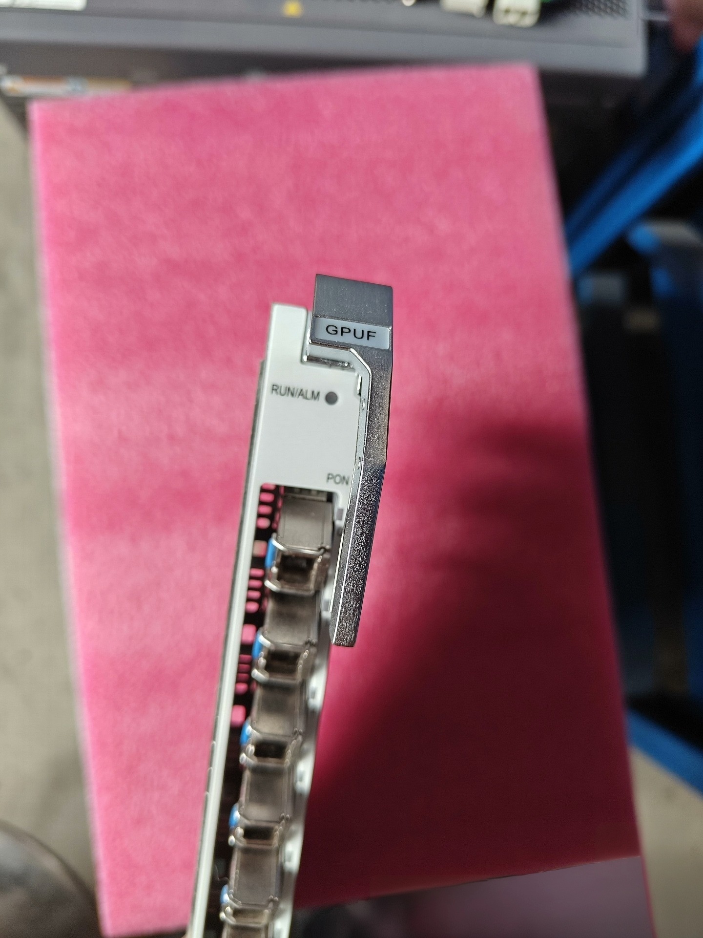 The GPUF board is a 16-port GPON service board for Huawei’s MA5800 series OLT equipment. It is designed for fiber access networks, supports GPON (Gigabit-capable Passive Optical Network) technology, provides 16 GPON ports, and is suitable for scenarios such as FTTH (Fiber to the Home).
