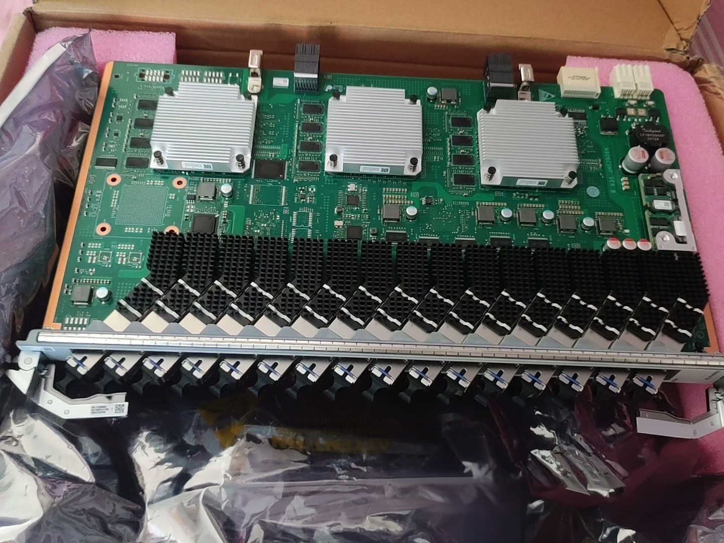 The board is equipped with 16 ports, each supporting symmetric rates of 10Gbps downstream and 10Gbps upstream. It maintains backward compatibility with traditional GPON ONUs, supporting rates of 2.5Gbps downstream and 1.25Gbps upstream. With a typical power consumption of approximately 60W, it must be installed in compatible chassis such as the MA5800-X15 or X7, relying on their power supply and modules. Its high-density design allows a single chassis to support up to 256 10G PON interfaces, significantly boosting access capacity, making it suitable for high-bandwidth scenarios like enterprise headquarters and data centers.